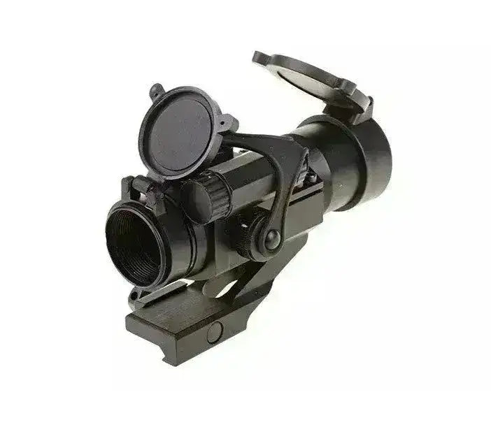 Solidny celownik kolimatorowy wykonany z aluminium. Celownik posiada regulację wysokości i kierunku, posiada czerwoną/zieloną kropkę o różnych poziomach jasności.