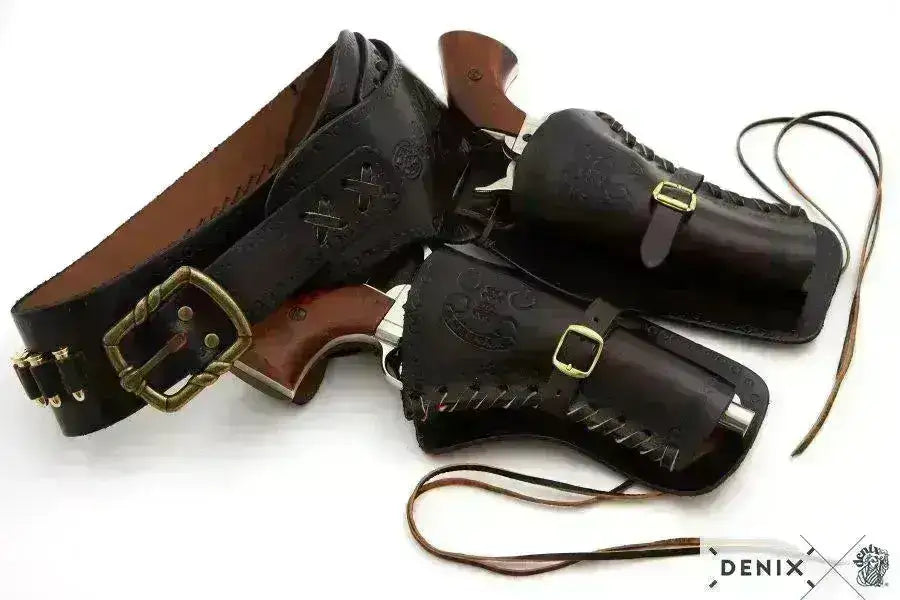 Pasek Denix Western z kaburą na lewą i prawą stronę. Wykonany ze skóry - najwyższej jakości pasek kowbojski!
