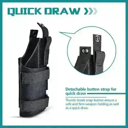 Pasuje do niemal wszystkich pistoletów, w tym Glock, Beretta, Sig Sauer i wielu innych. Kabura posiada standardowy przycisk blokujący broń.