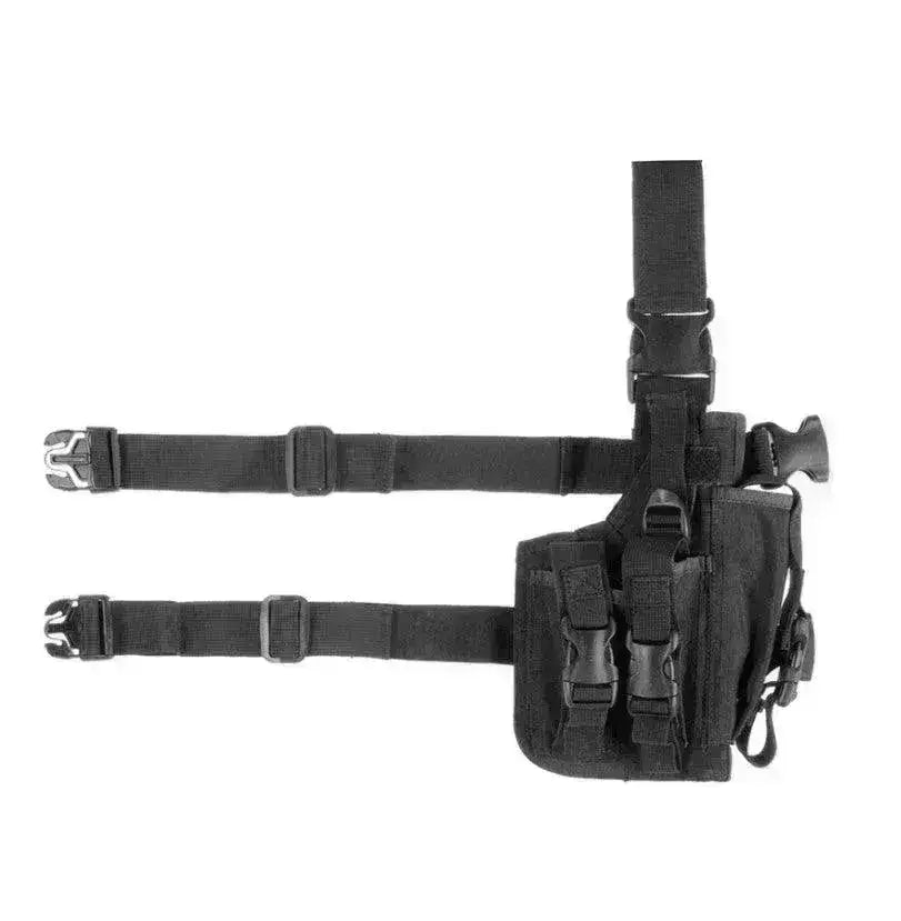 Uniwersalna kabura udowa SOF do pistoletu z kieszeniami na magazynki - czarna
