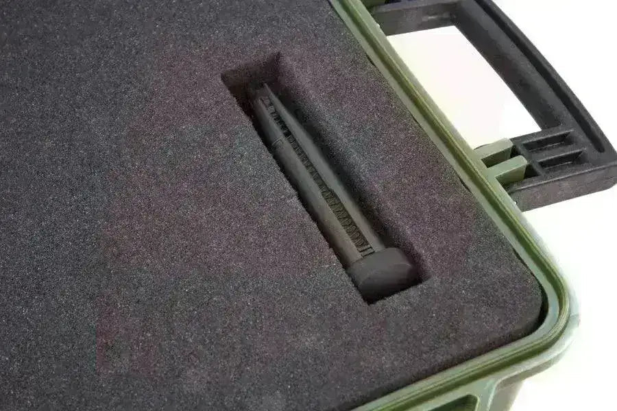 Wytrzymała i dobra walizka z pianką Pick n Pluck (PnP). PnP umożliwia formowanie pianki odpowiednio do karabinu i posiadanego wyposażenia, dzięki czemu spoczywa wyjątkowo bezpiecznie.