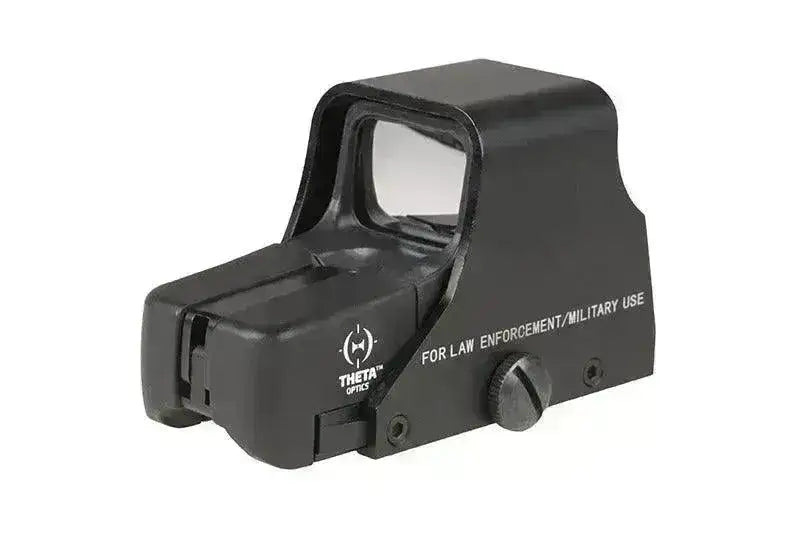 Ten celownik kolimatorowy firmy Theta Optics to holograficzny celownik kolimatorowy często spotykany w karabinach M15/M16. Możesz wybierać pomiędzy czerwoną lub zieloną siatką, a dzięki regulowanej jasności doskonale nadaje się do użytku zarówno w dzień, jak i o zmierzchu. Punkt celowania celownika można łatwo regulować zarówno w pionie, jak i w poziomie, a także można go łatwo przymocować do zdecydowanej większości szyn 21 mm. Celownik wykonany jest z mieszanki polimeru i metalu, dzięki czemu jest bardzo wytrzymały. Luneta zasilana jest 4 bateriami LR44, które można łatwo włożyć do lunety.