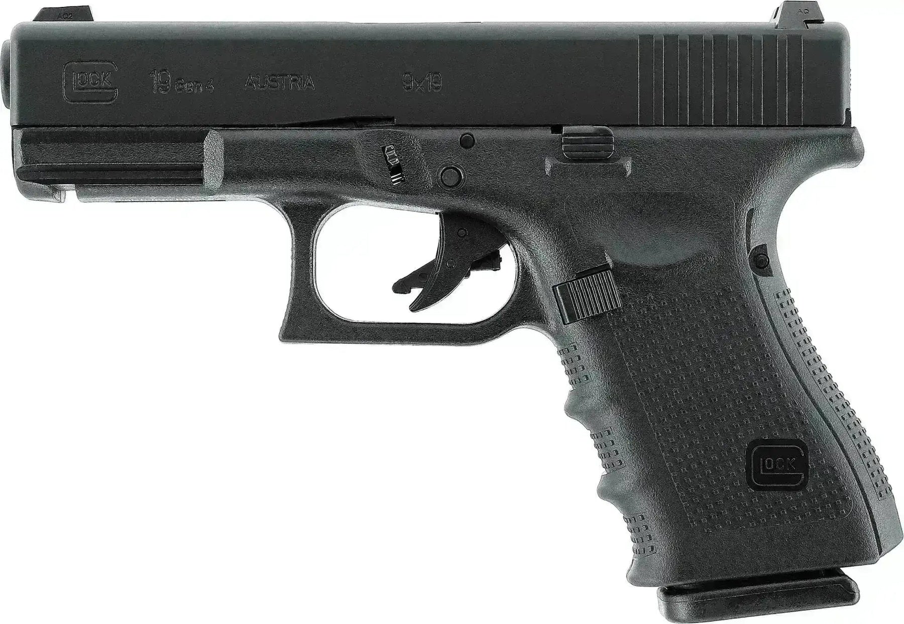 Glock 19 i Glock 19 Gen4 są niemal identyczne. Różnica dotyczy faktury szkieletu, konstrukcji zamka i przyrządów celowniczych. Przyrządy celownicze w pistoletach Glock 19 Gen4 to licencjonowane przyrządy celownicze firmy Glock, powiększone i oznaczone białymi kropkami.