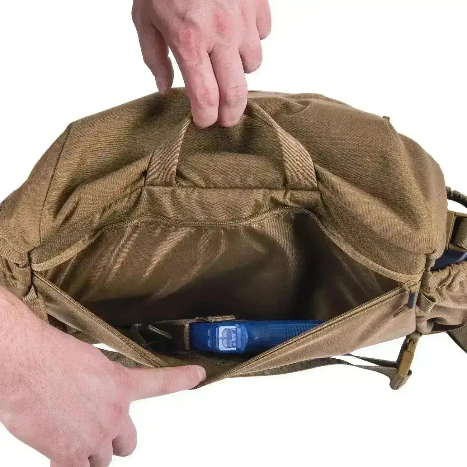 - Wewnętrzne panele na rzepy do mocowania organizerów, kieszeni i kabur