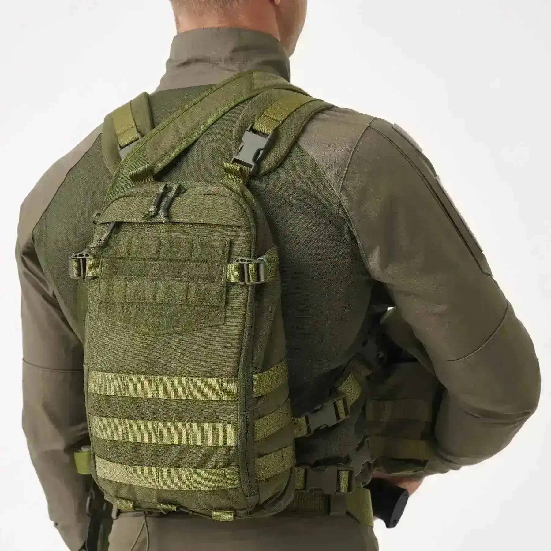 Ramiączka są regulowane i można je łatwo odpiąć w całości. Torbę można zamontować bezpośrednio na kamizelce bojowej w systemie MOLLE/PALS.