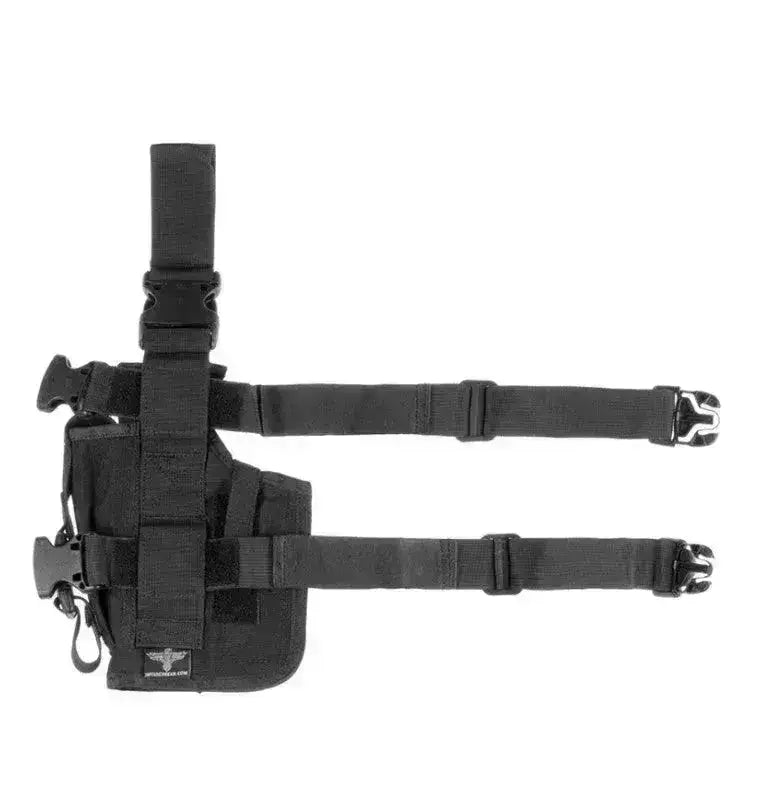 Regulowana kabura udowa pasująca do całej gamy pistoletów. Kabury można zapiąć za pasek i wokół uda, tak aby był bezpiecznie osadzony.