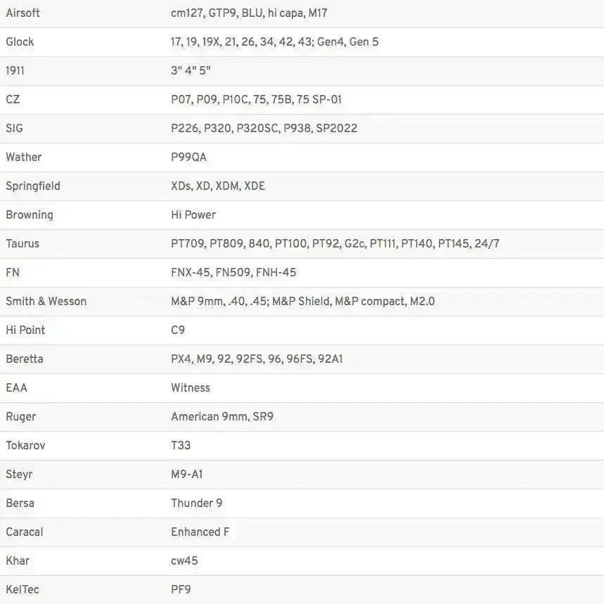 Zobacz zdjęcie nr 2, aby zobaczyć listę pasowań. Kabura pasuje również do większej liczby modeli niż wymienione.