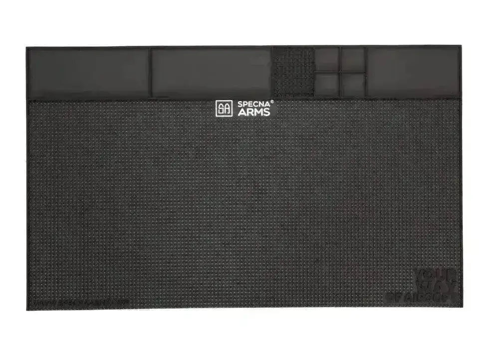 Duża i praktyczna mata antypoślizgowa z gumy, którą można wykorzystać jako podstawę podczas konserwacji broni miękkiej. Mata ma podniesione krawędzie, dzięki czemu żadne części ani śrubki nie mogą się stoczyć. Mata doskonale nadaje się do konserwacji sprzętu airsoftowego, ale nadaje się również do wszelkich prac z małymi częściami. Potencjalnie może to zaoszczędzić Ci mnóstwa bólu głowy i szukania małych części, które się odsunęły!