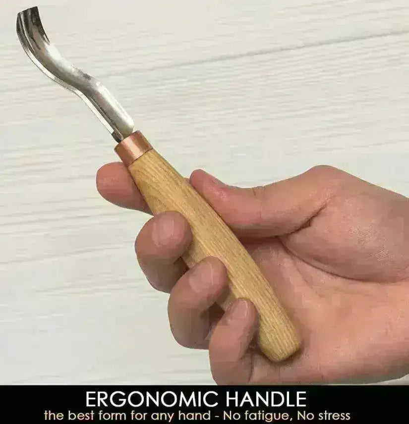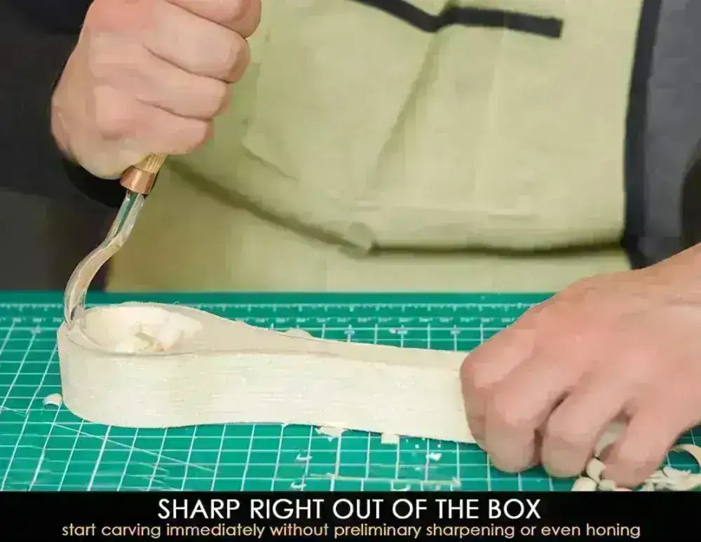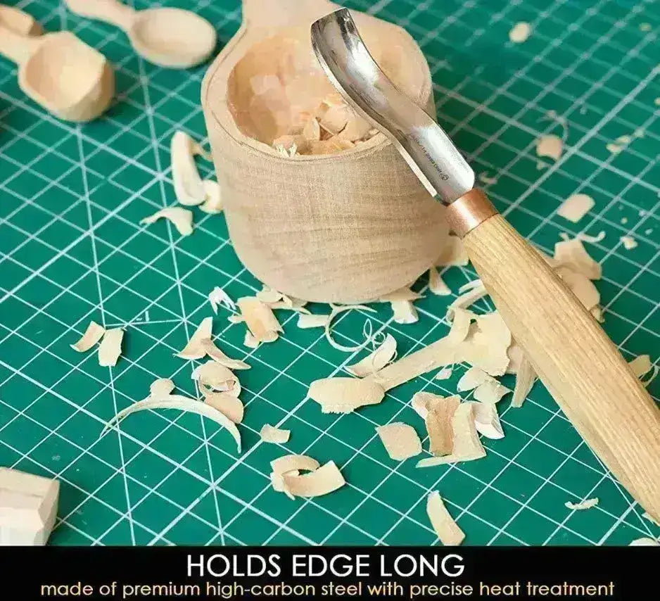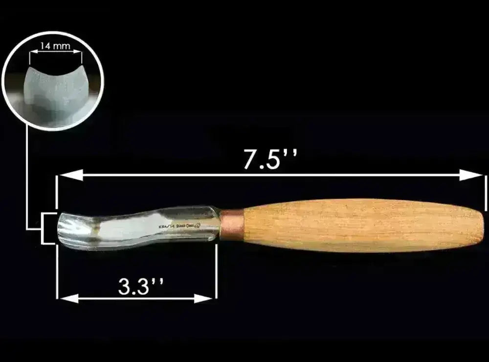 Zakrzywione dłuto do rzeźbienia w drewnie, idealne do wydrążania drewna. „Dłuto wygięte” jest świetnym narzędziem do tworzenia okrągłych kształtów w drewnie, dającym dobre rezultaty. Nieocenione przy przybijaniu gwoździ do kubków, misek i chochli.