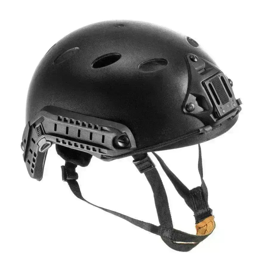 Prosta replika słynnego kasku PJ FAST. Kask doskonale sprawdza się w rozgrywkach airsoftowych, posiada regulowany pasek podbródkowy, montaż NVG oraz szyny po bokach.
