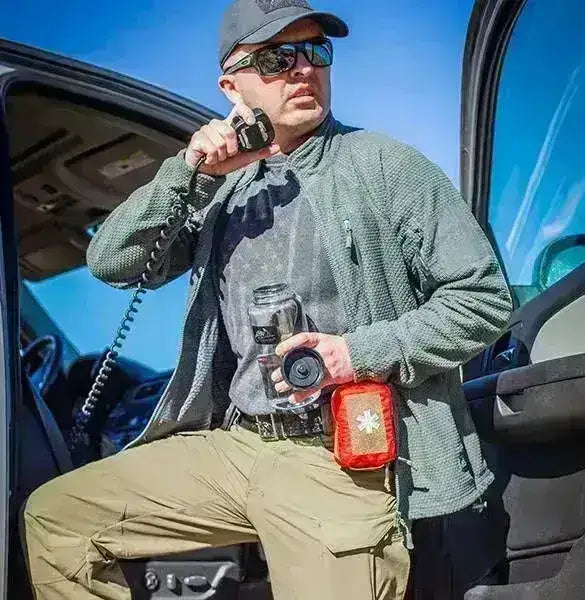 Mały czarny Worek sanitarny z kieszeniami z siatki wewnątrz i zamkami błyskawicznymi. Idealny do zawieszenia na pasku, plecaku lub kamizelce za pomocą mocowania MOLLE. Kieszeń sanitarna umożliwia spakowanie najpotrzebniejszych rzeczy, których potrzebujesz w apteczce, bez zajmowania zbyt wiele miejsca.