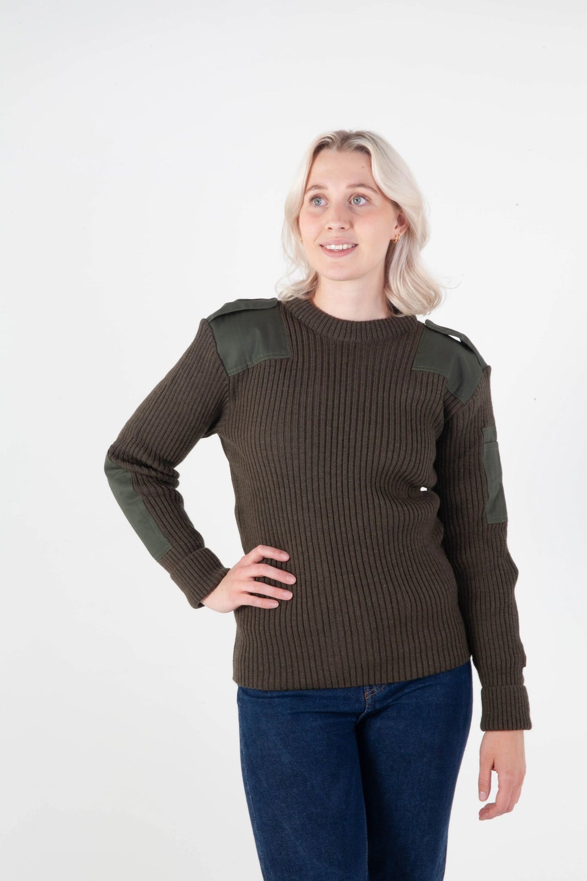 Norweski sweter NATO zielony – sweter wełniany unisex ze wzmocnieniami