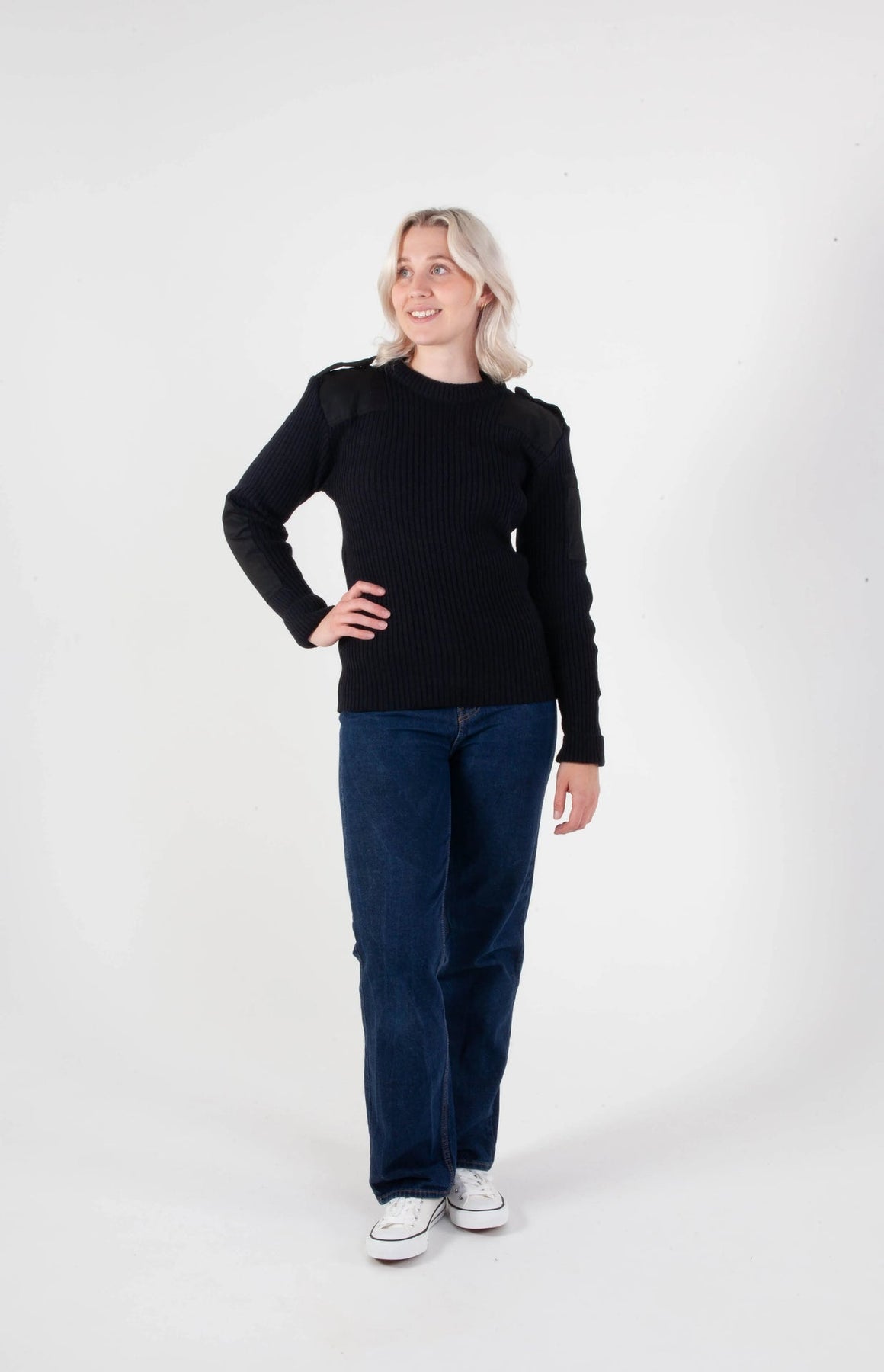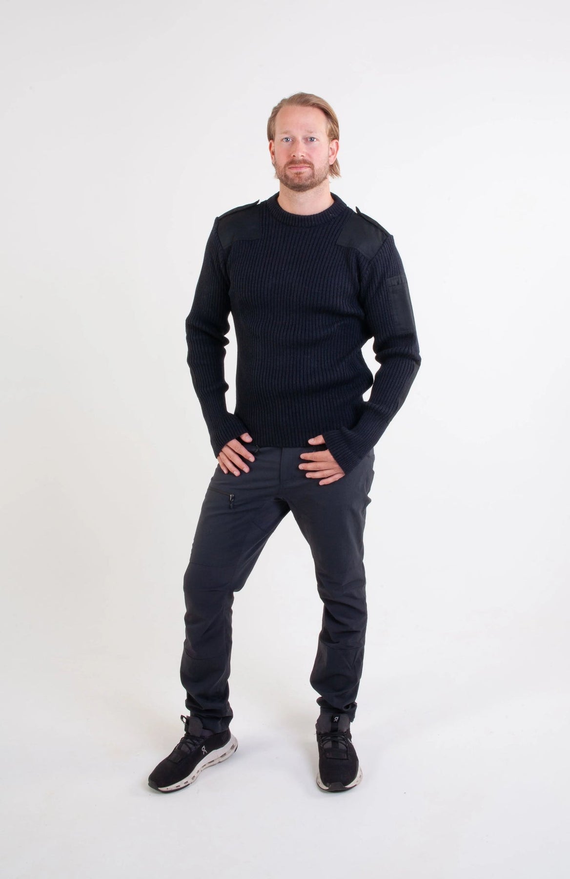 Norweski sweter NATO czarny – sweter wełniany unisex ze wzmocnieniami