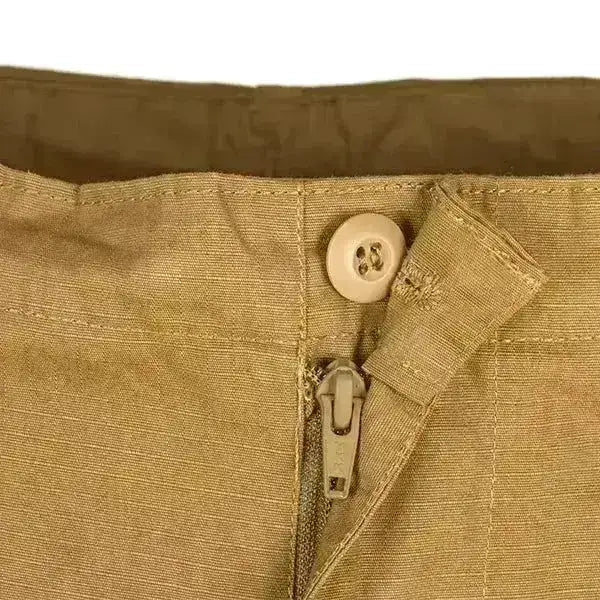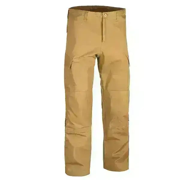 Wytrzymałe i oddychające spodnie taktyczne z dużą ilością miejsca w kieszeniach. Spodnie posiadają technologię rip-stop, dzięki czemu są wyjątkowo wytrzymałe. Spodnie posiadają mnóstwo kieszeni, w tym 4 z przodu, 2 przy kostce i 2 z tyłu. Kamuflaż w kolorze Coyote Brown.