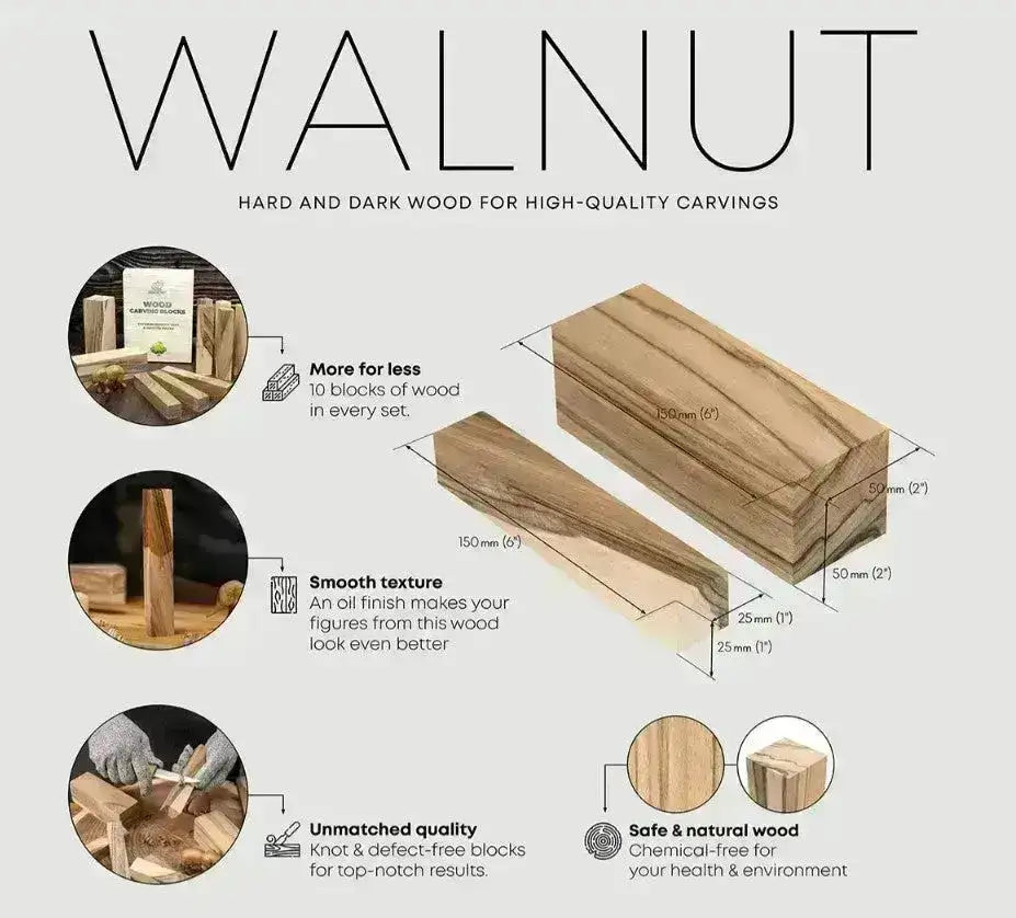 10 sztuk drewnianych klocków od Beaver Craft do rzeźbienia w drewnie bloki wykonane są z drewna orzechowego.