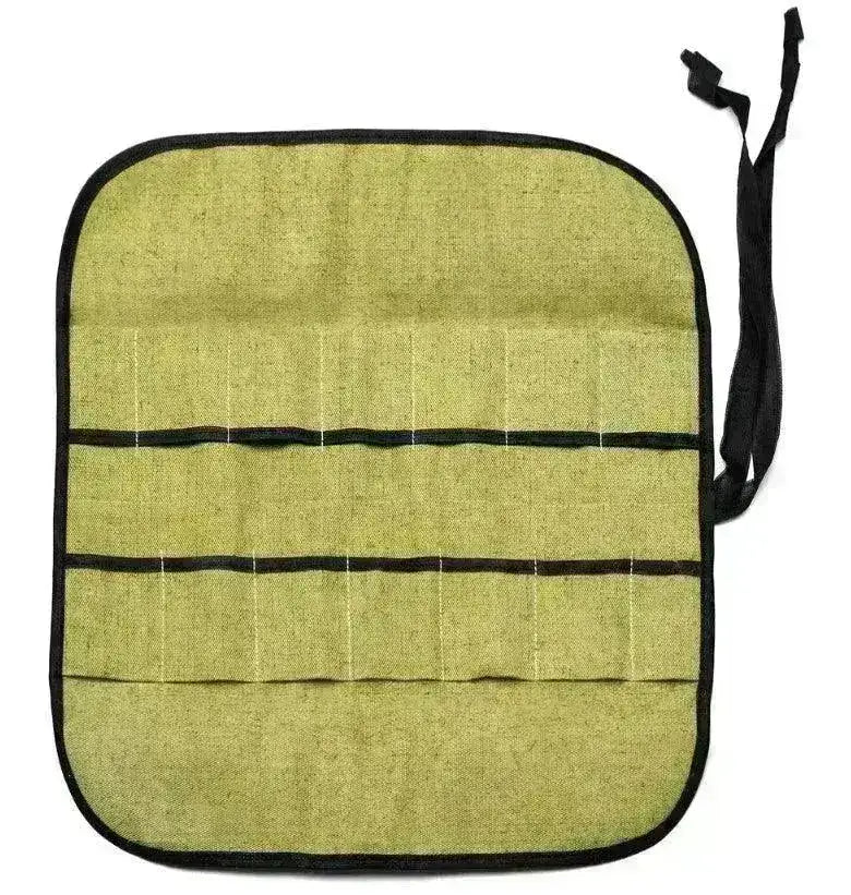 Praktyczna i ładna płócienna walizka z miejscem na łącznie 12 noży i innych narzędzi. Tylko zwinięty.