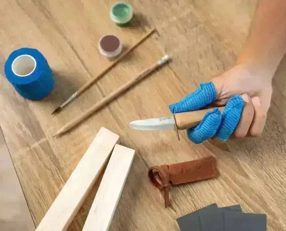 - Nóż z tępym czubkiem i osłoną palców dla większego bezpieczeństwa