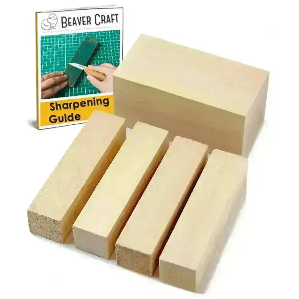 Drewniane klocki od Beaver Craft Do rzeźbienia w drewnie bloki wykonuje się z drewna lipowego. Lipa to dobre drewno do obróbki, ponieważ jest miękkie i łatwe do rzeźbienia, a jednocześnie ma jasną barwę, dzięki czemu łatwo je olejować i malować na wybrany kolor. Drewno jest hipoalergiczne i zaprojektowane z myślą o dzieciach. Z drewna można na przykład wykonać zabawki dla dzieci lub przybory kuchenne.