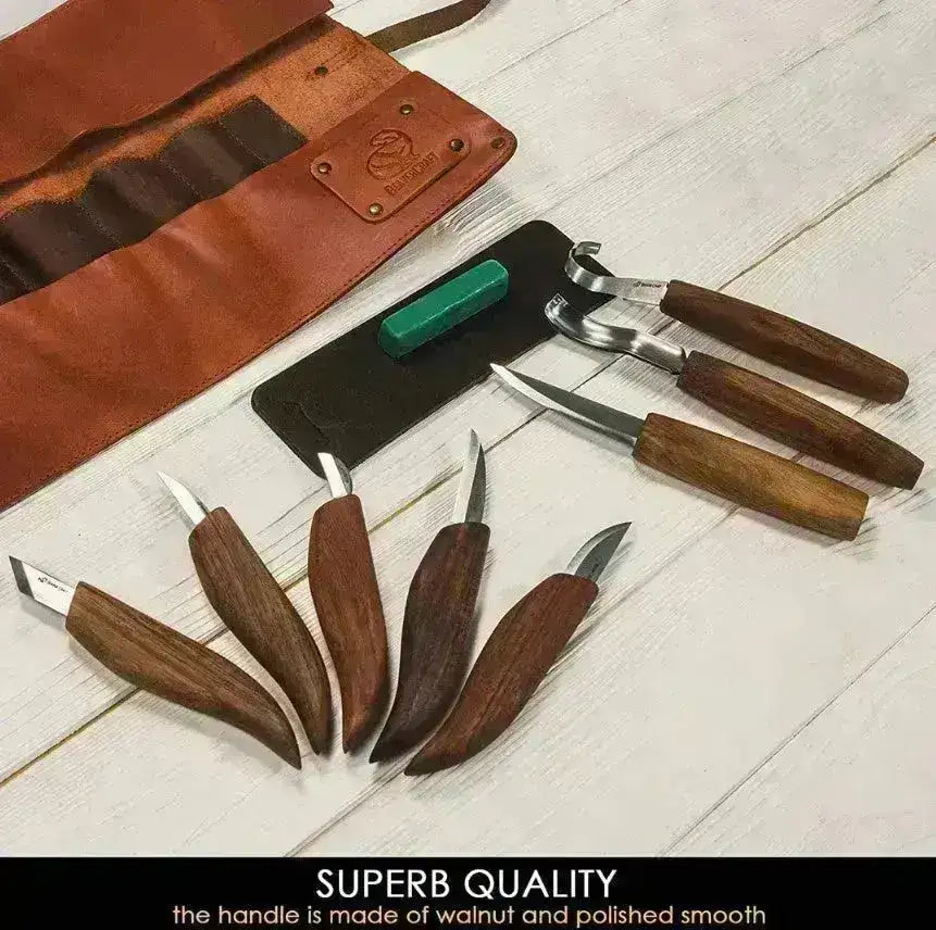 Łącznie 8 różnych noży w tym dużym zestawie od żłobienia i rzeźbienia w drewnie - Nadaje się do wszystkich projektów rzeźbienia w drewnie