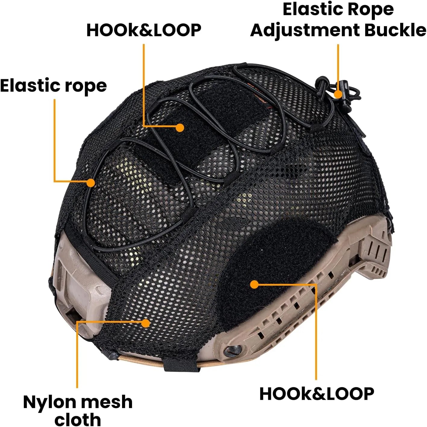 Tactical Ops hjelmtrekk til FAST-hjelmer – 500D nylon med borrelås og strikk