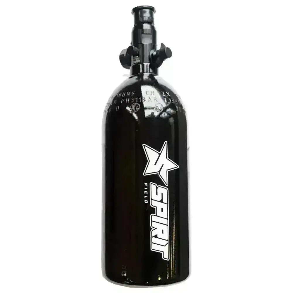 200 barów, zbiornik powietrza 0,8 litra. Zawiera regulator wysokiego ciśnienia i mieści łącznie 160 litrów powietrza.