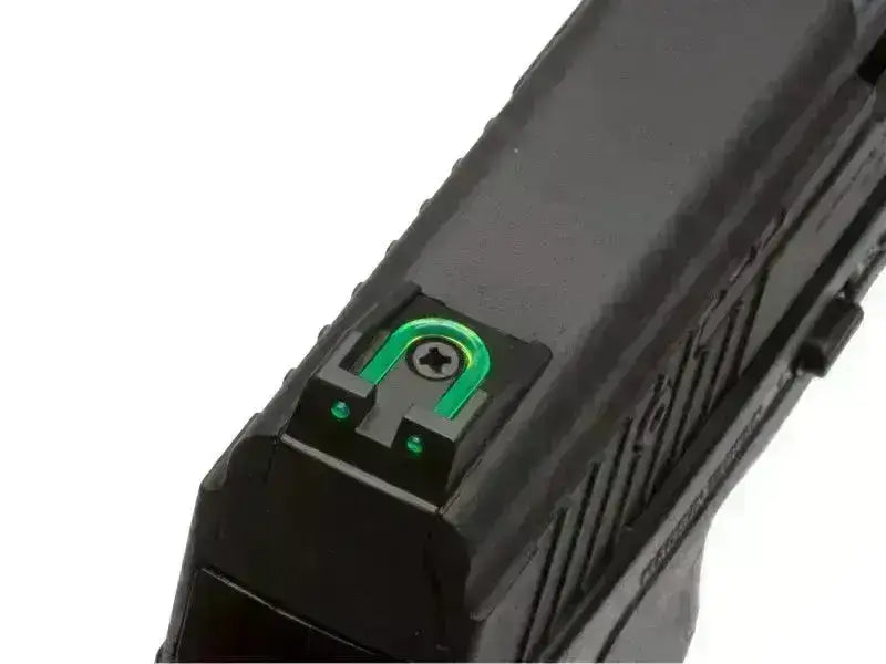 Przyrządy celownicze są wyposażone w zielone światłowody, co ułatwia celowanie. Na spodzie lufy znajduje się 21-milimetrowy otwór umożliwiający zamocowanie latarki lub lasera, jeśli zajdzie taka potrzeba.