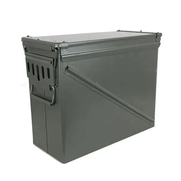 Disse klassiske ammoboksene i metall er ideelle for både transport og langtidslagring. Laget i kraftig stål med gummiforet lokk og solid låsemekanisme, beskytter de effektivt mot fukt, støv og slag. Perfekt for patroner, taktisk utstyr, verktøy eller reservedeler - både hjemme og i felt.