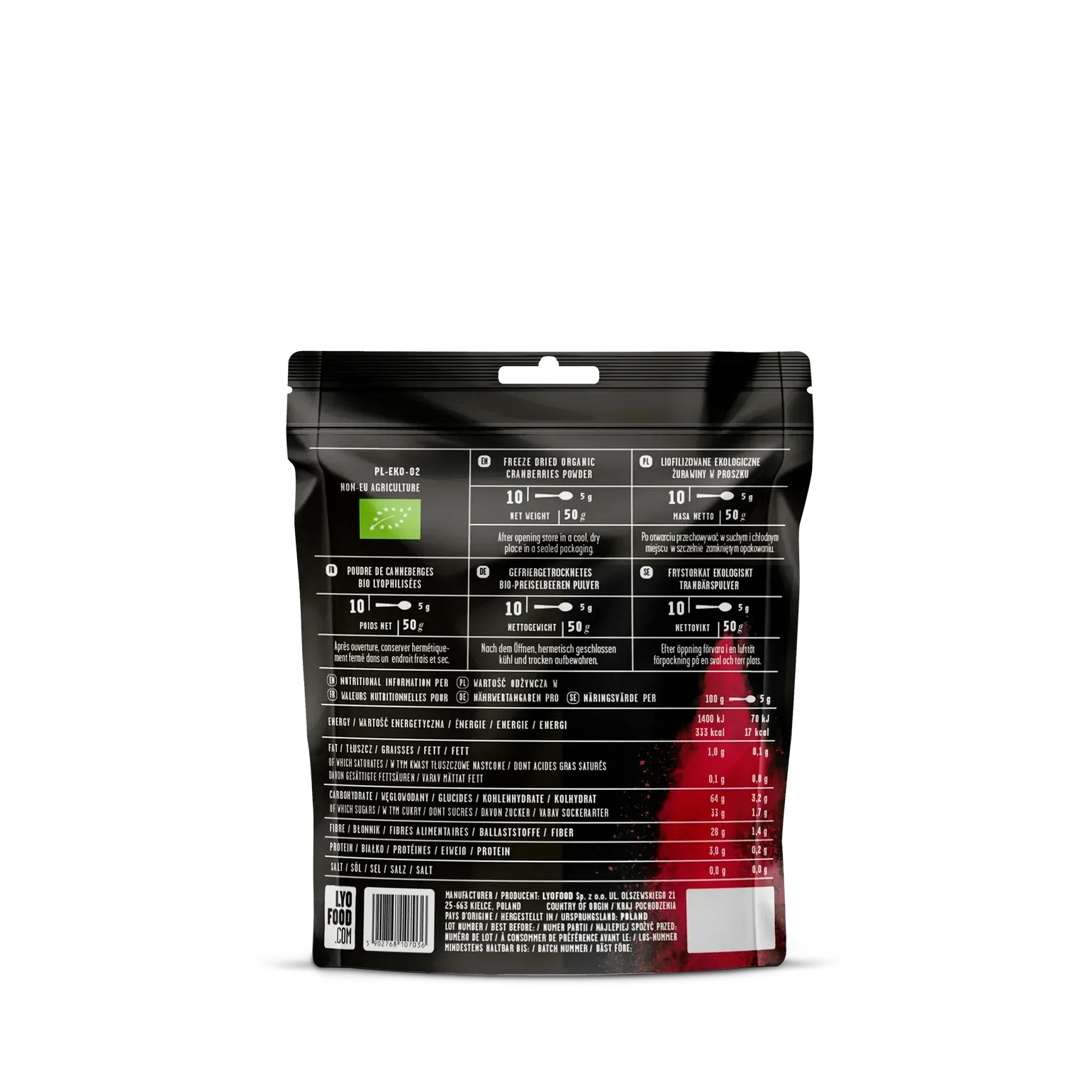 LYOFOOD Økologisk Tranebærpulver – Superfrukt for smoothie og grøt