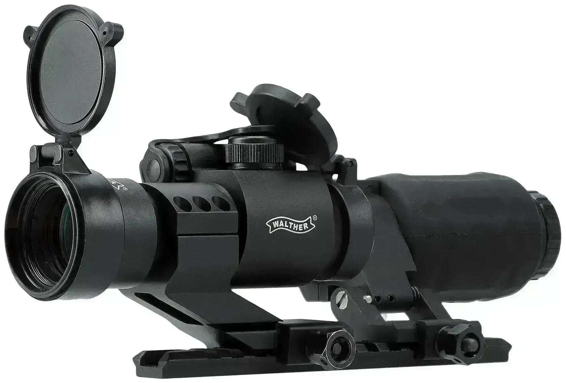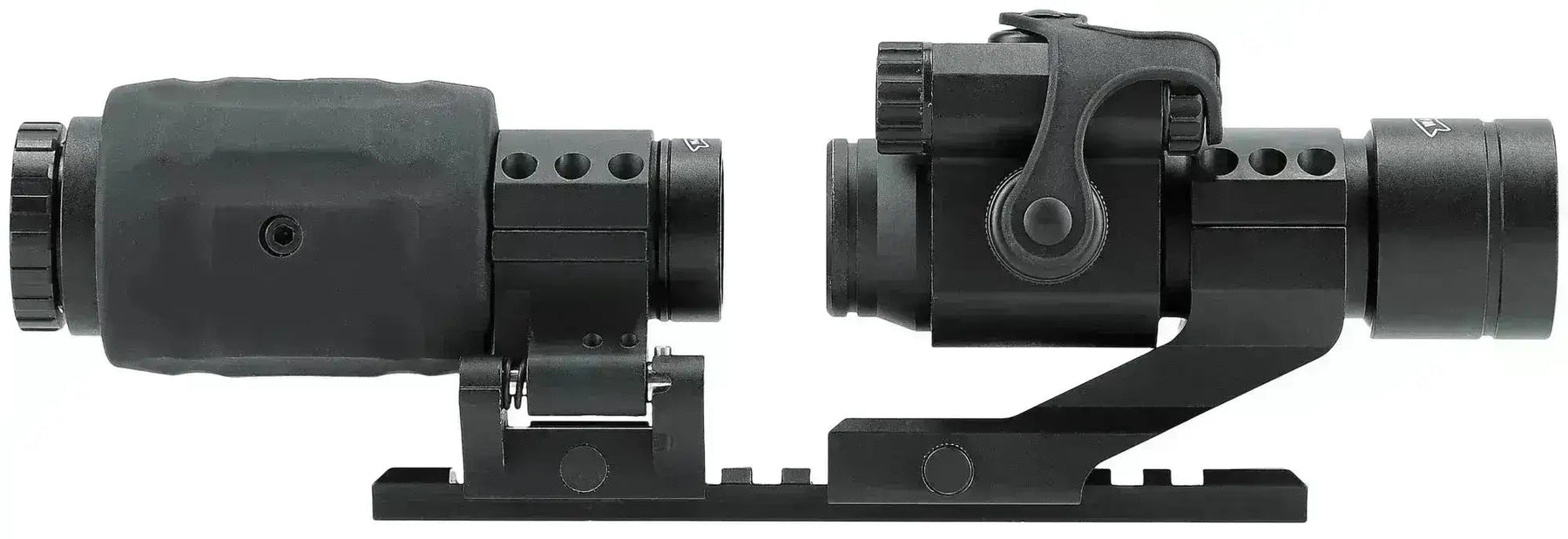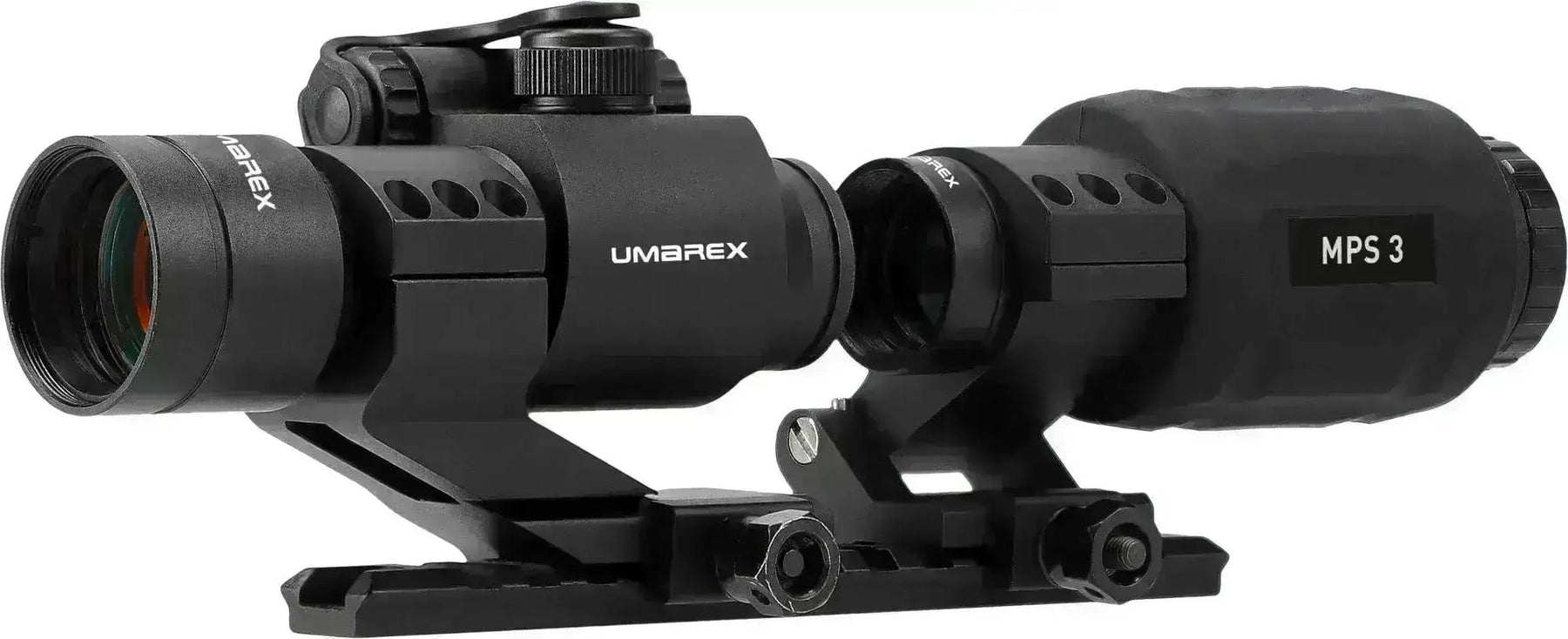 MPS (Magnifying Point Sight) firmy Umarex to połączenie dobrego celownika kolimatorowego z trzykrotnym powiększeniem, które można odchylić na bok, gdy nie jest używane. Dzięki temu zestaw ten sprawdzi się w niemal każdej sytuacji, zarówno na otwartym terenie, jak i w warunkach CQB. Zestaw zawiera także szynę o długości 15,5 cm i gwint 21 mm oraz klucz imbusowy umożliwiający regulację celownika kolimatorowego z boku i na wysokość.