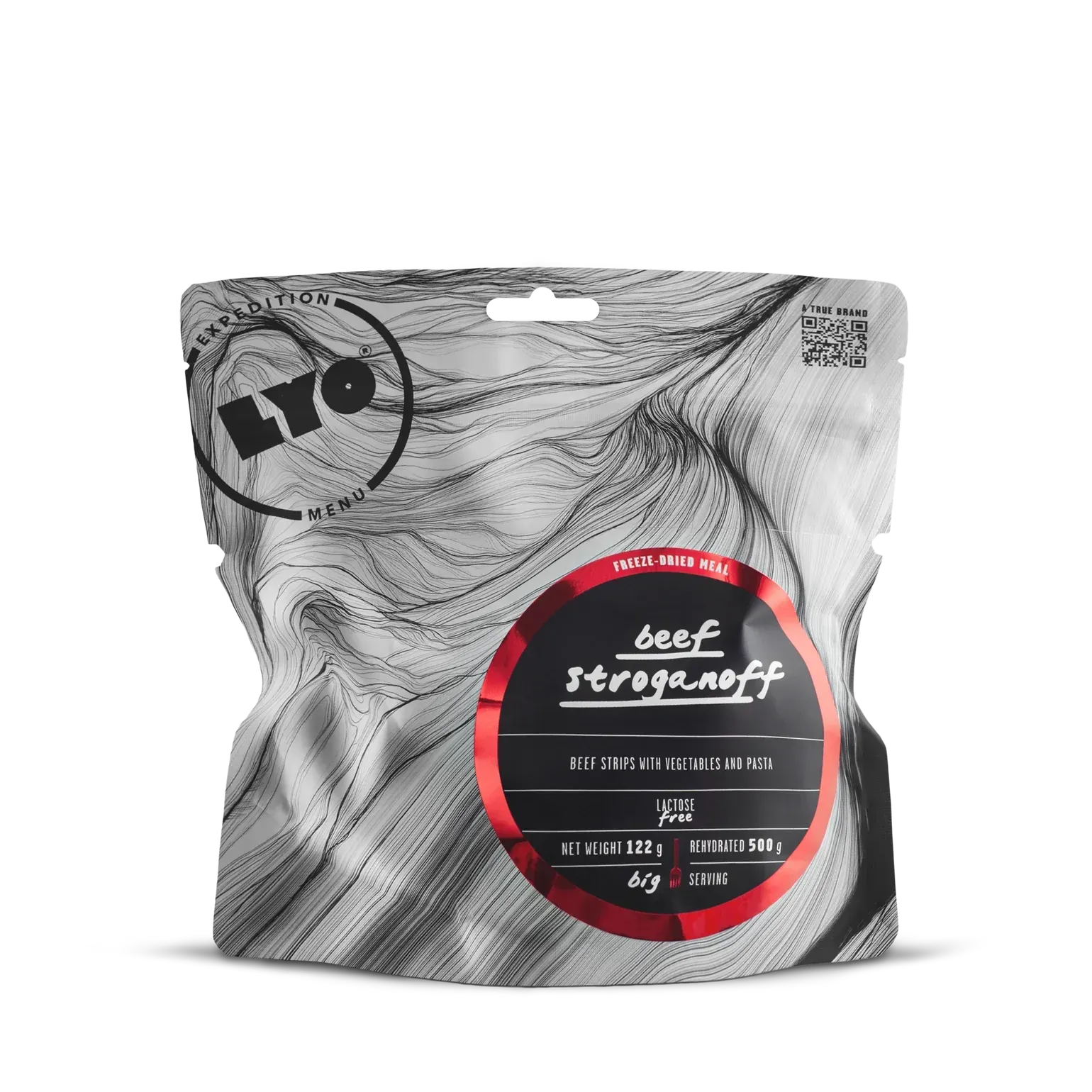 LYOFOOD Biff Stroganoff gir deg en ekte smaksopplevelse med møre biffbiter, sopp og en kremet paprikasaus. Perfekt for deg som ønsker en varmende og næringsrik middag på tur. Retten er laget med 100 % naturlige ingredienser, ingen konserveringsmidler, og frysetørket for lav vekt og lang holdbarhet.