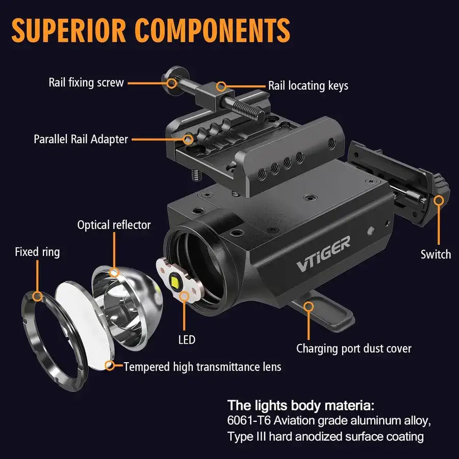 VTIGER PL1 er et ypperlig valg for deg som ønsker kraftig, kompakt pistol-lykt med profesjonell ytelse. Enten du er på jakt, trenger ekstra lys på luftvåpen, driver med sikkerhet eller ønsker kvalitet elske design—PL1 leverer.