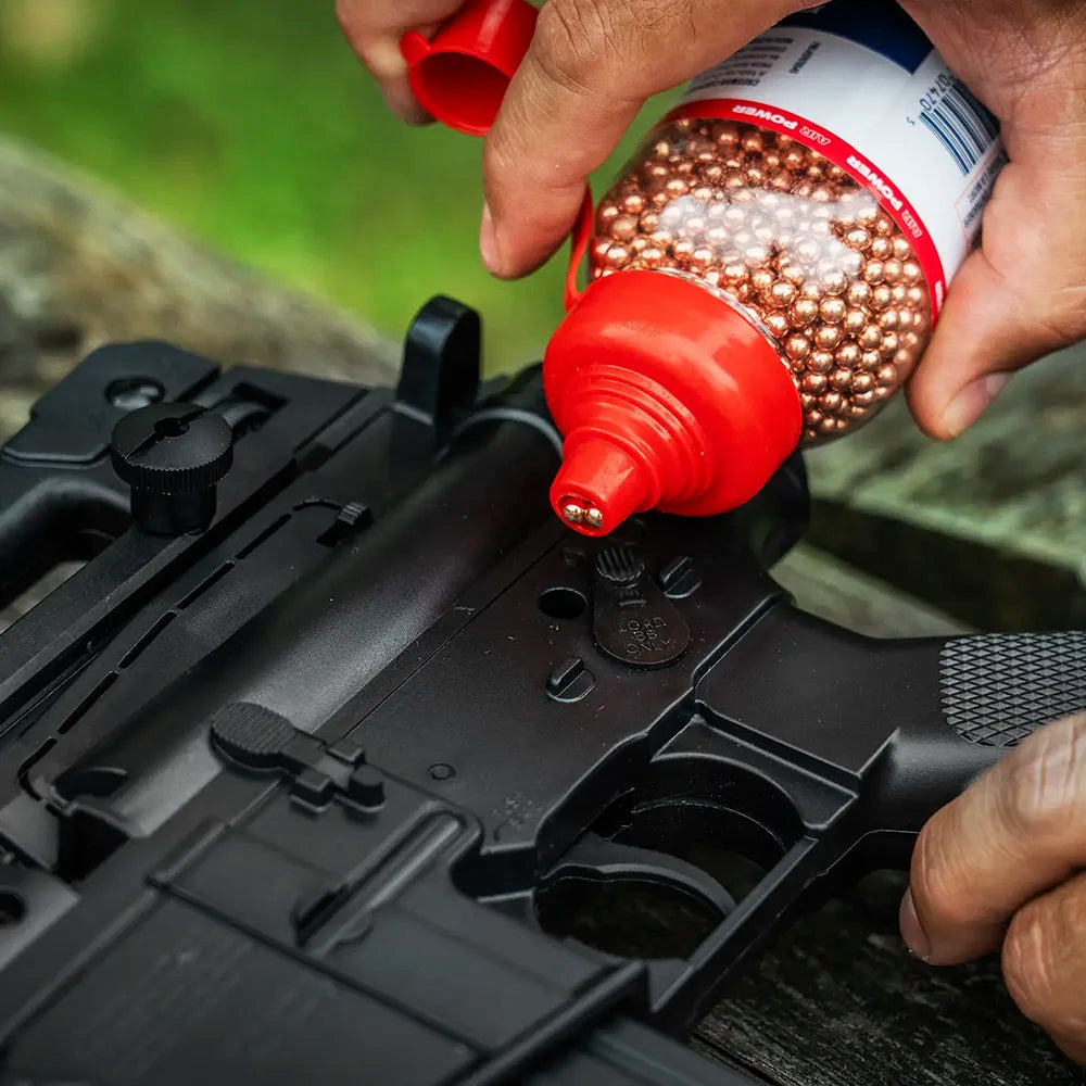 Karabin posiada zintegrowaną pompkę, którą można ręcznie napompować poprzez kilkukrotne pociągnięcie ramienia ładującego. Nie potrzeba żadnego materiału pędnego ani uzupełniania naboju, dzięki czemu karabin ten jest bardzo tani i łatwy w obsłudze!