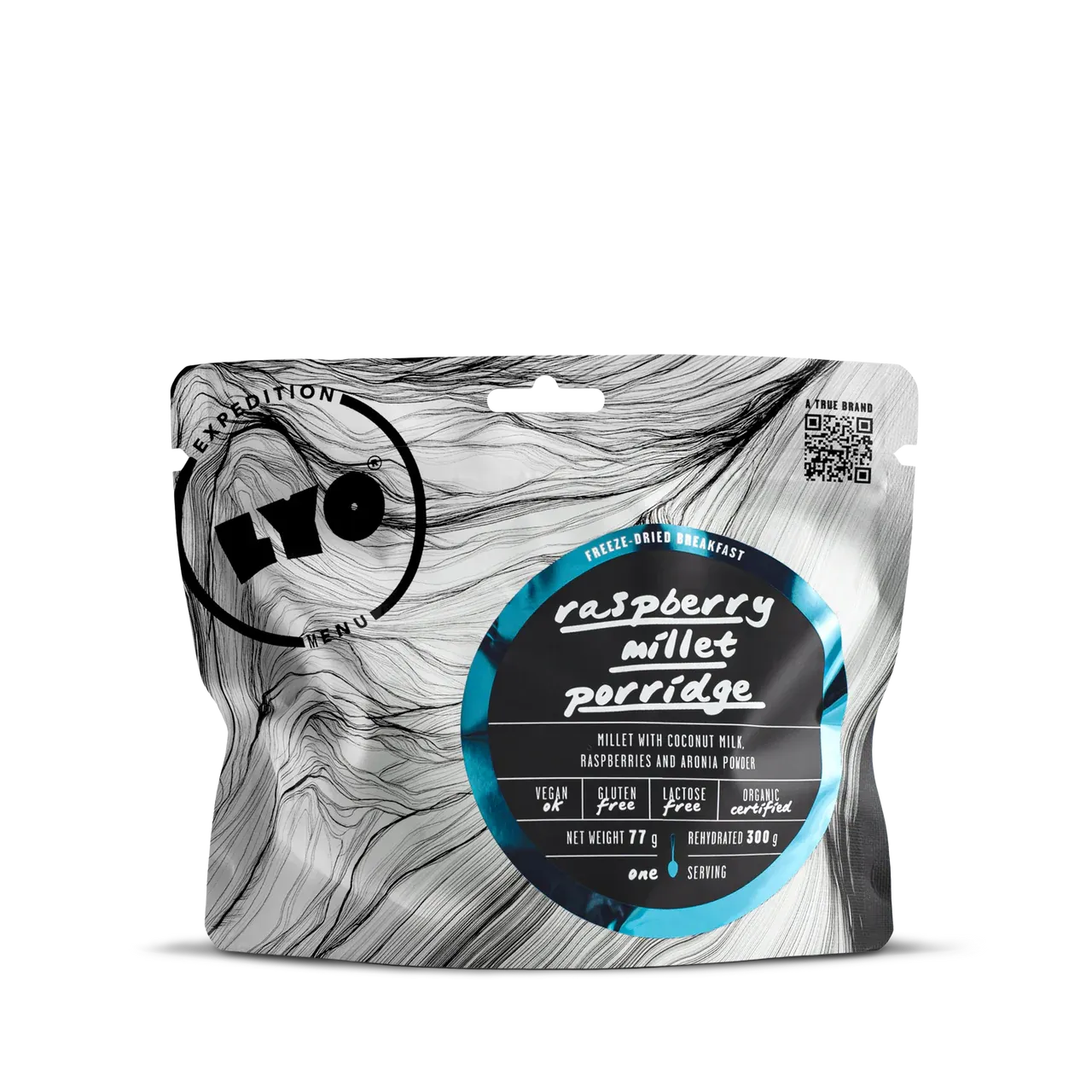 LYOFOOD Raspberry Millet Porridge – Økologisk grøt med hirse, bringebær og aronia