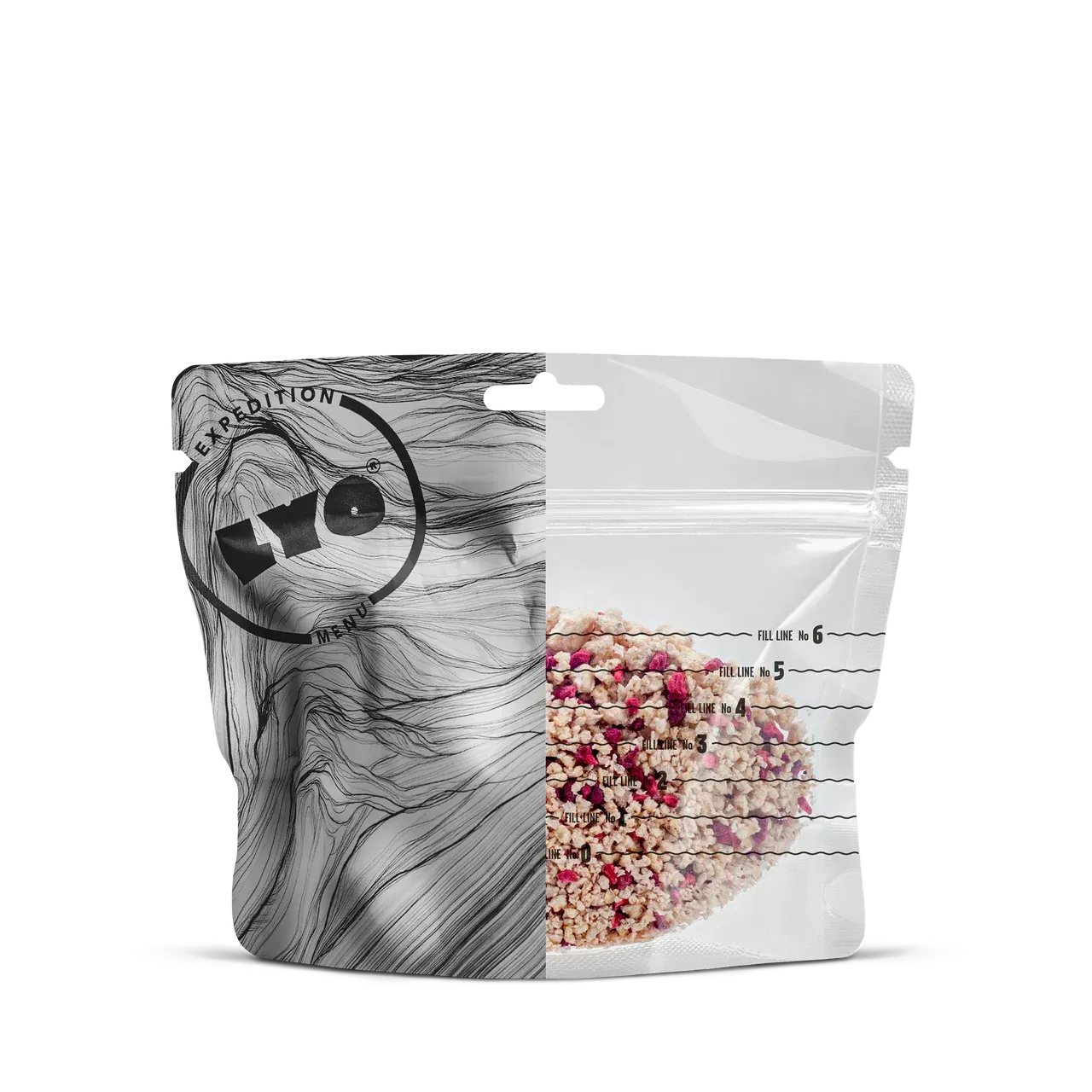 En nydelig frokostgrøt med økologisk hirse, kokosmelk, bringebær og aronia. Søtet med agavesirup og helt fri for tilsetningsstoffer. Denne frokosten fra LYOFOOD gir en næringsrik og naturlig boost – perfekt for tur, ekspedisjon, eller hverdager med høyt tempo. Glutenfri, vegansk og laktosefri.