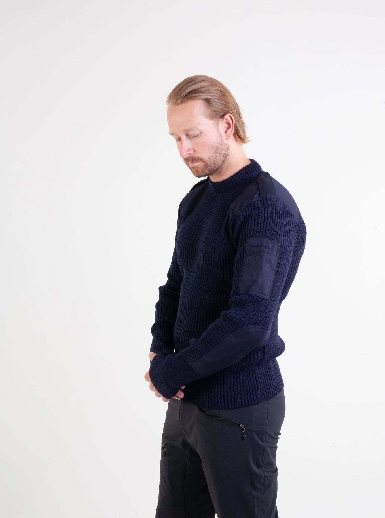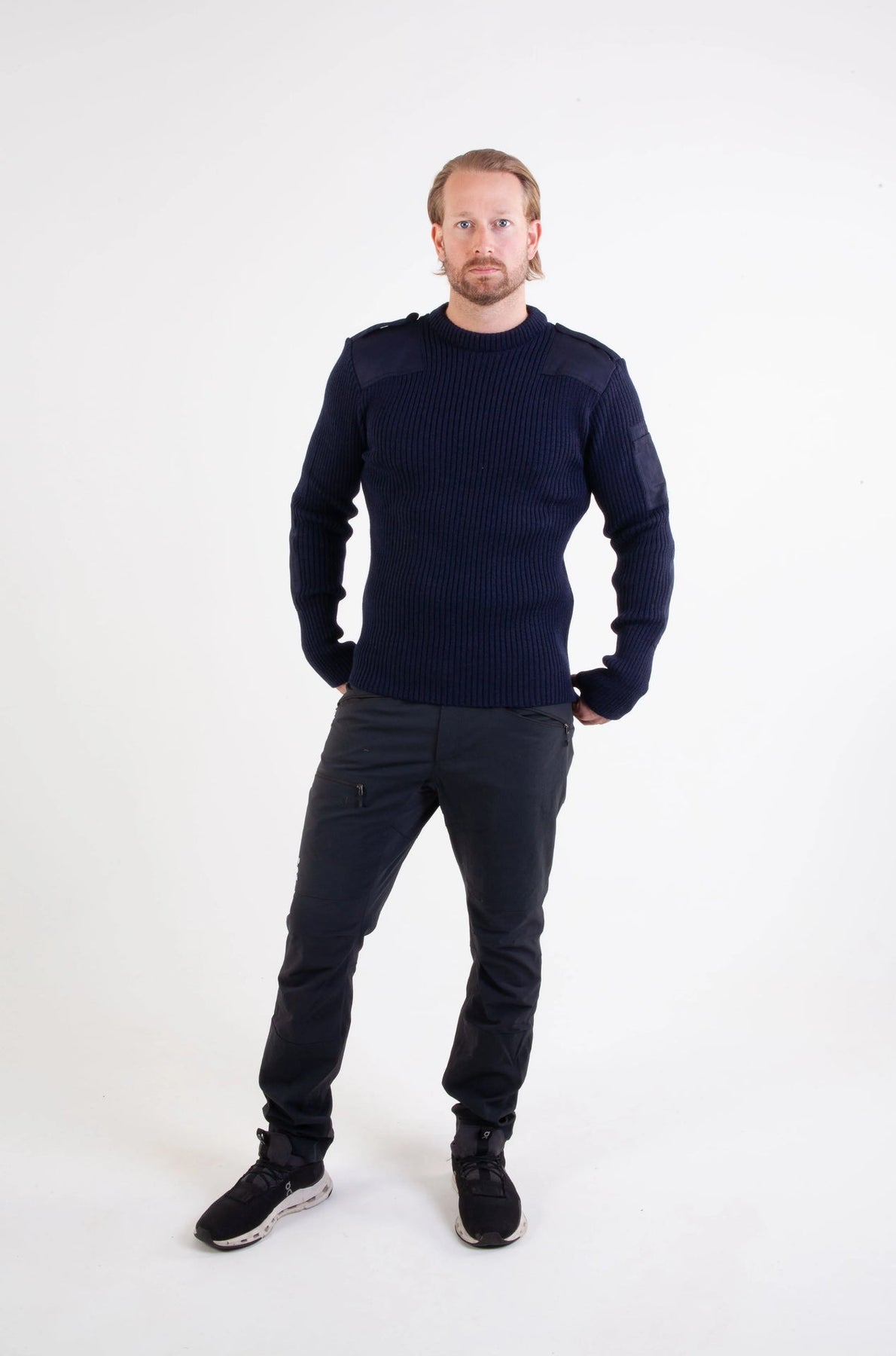 Granatowy sweter NATO firmy Bråtens inspirowany jest klasyką norweskiej armii. Wykonany w 80% z wełny i w 20% z poliestru, zapewnia ciepło, trwałość i wysoki komfort. Wzmocnienia na ramionach i łokciach sprawiają, że sweter sprawdza się równie dobrze w terenie, jak i na co dzień.