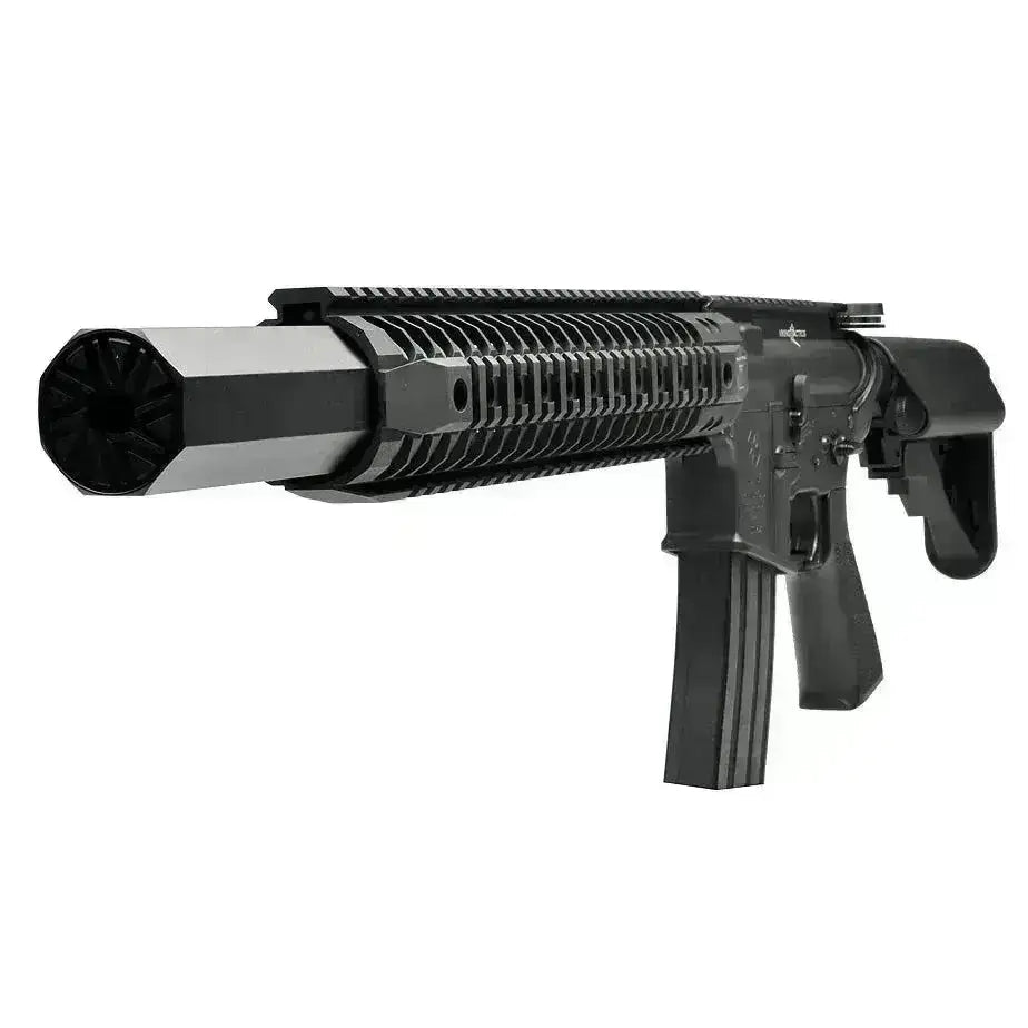 Unikalny tłumik OSS, który naprawdę się wyróżnia. Proste boki i głębokie ryciny z oryginalnymi logotypami i matowym czarnym wykończeniem czynią ten tłumik jednym z najbardziej spektakularnych na rynku airsoftowym.