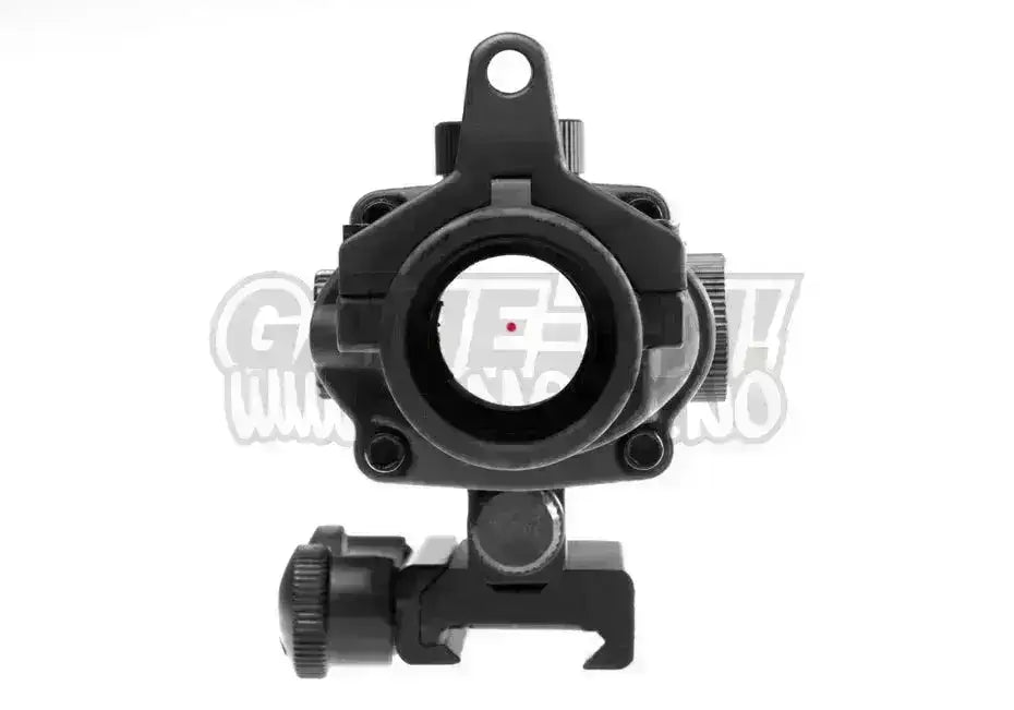 Pasuje do wszystkich szyn 21 mm i można go zamontować bez użycia narzędzi. Punkt celowniczy jest w pełni regulowany zarówno w poziomie, jak i w pionie.