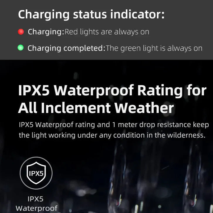 Denne hodelykten er bygget for å tåle regn og fuktige miljøer, slik at den er en pålitelig følgesvenn for alle utendørsaktiviteter.