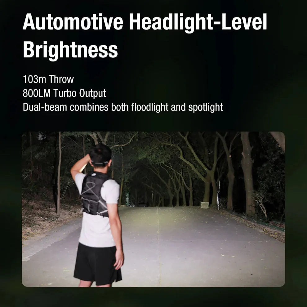 • Kraftig belysning: Opptil 800 lumen for optimal sikt på stier, veier og i skogen.