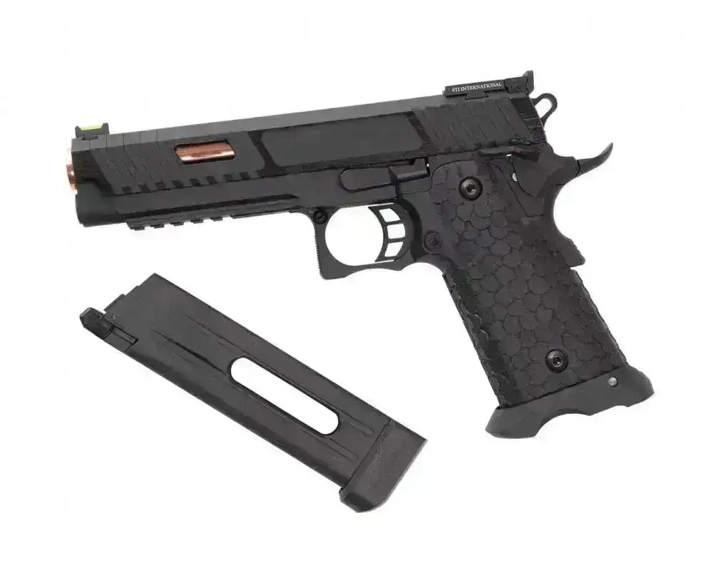 Ten licencjonowany pistolet STI Combat Master 2011 jest nowoczesnym rezultatem tego Klasyczny design 1911. Konstrukcja ta jest ceniona przez osoby uprawiające strzelectwo sportowe za wszystkie cechy techniczne, które zapewniają precyzję i szybkość. Paski na zamku zostały wycięte CNC w celu zmniejszenia masy, a jednocześnie zapewnienia idealnego chwytu broni. Przedłużony otwór magazynka sprawia, że jego wymiana staje się niezwykle prosta. Spust jest precyzyjnie dostrojony i zapewnia Delikatnie i natychmiast usunąć. Broń posiada także przyrządy celownicze z włókna światłowodowego, takie jak w broni używanej na zawodach profesjonalnych.