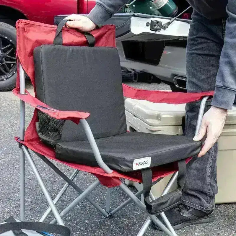 Spraw, aby zimne siedzenia na stadionach lub chłodne tereny łowieckie były ciepłe i wygodne dzięki podwójnemu podgrzewanemu siedzeniu Zippo. To miękkie i wyściełane siedzisko można podłączyć do źródła zasilania zgodnego ze standardem USB, takiego jak urządzenia Zippo HeatBank®, w celu regulacji ciepła. Dzięki wodoodpornej nylonowej konstrukcji, wielu poziomom ogrzewania i kompaktowej składanej konstrukcji idealnie nadaje się do wszystkich rodzajów aktywności na świeżym powietrzu.