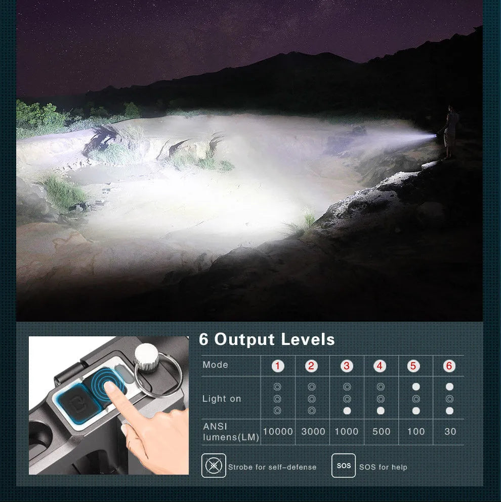 Superkraftig RS80GT lommelykt – 10 000 lumen med justerbar lysstyrke