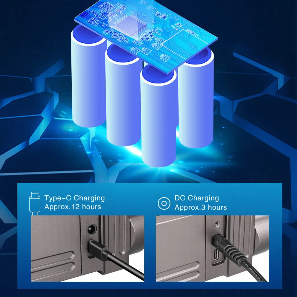 • Ladetid: 12 timer (USB-C) / 3 timer (DC)