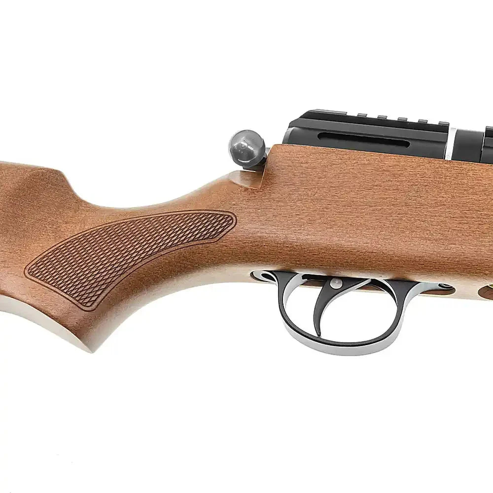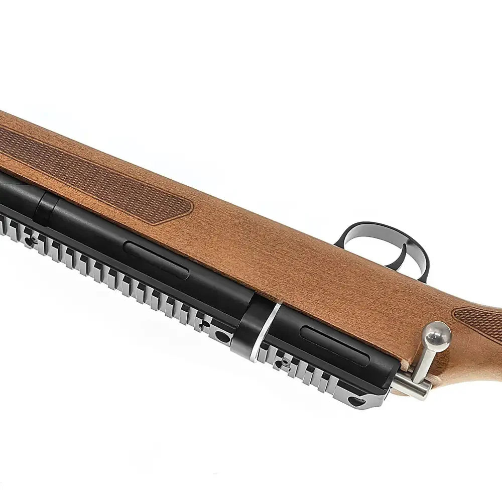 Et klassisk PCP luftgevær med moderne teknologi. Snowpeak M30B kombinerer tradisjonell trestokk med et regulert PCP-system for stabil ytelse og god presisjon. Den integrerte lufttanken rundt løpet gir riflen et karakteristisk design og en kompakt konstruksjon.